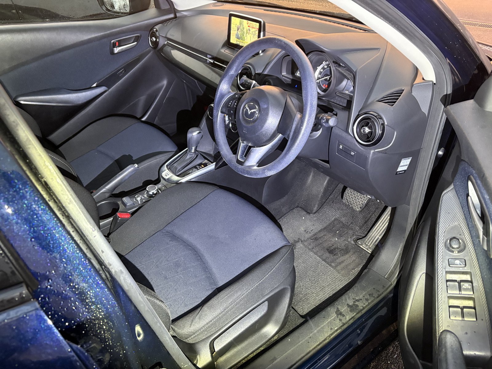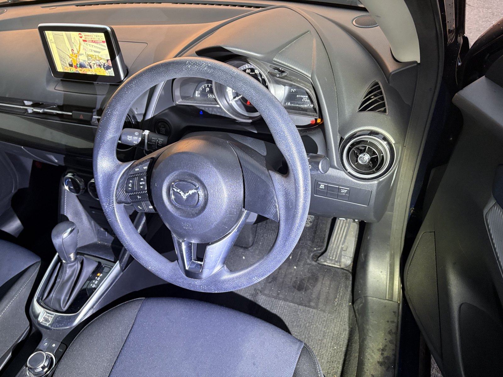 Experience the 2014 Mazda Demio, a stylish and reliable compact car. Its sleek blue exterior turns heads while the automatic transmission ensures a smooth drive. Enjoy the convenience of power windows and remote key access. Safety is a top priority with 6 airbags and stability control included. The UV filter glass protects you from harmful rays, keeping you comfortable during long drives. Adjust the steering wheel to suit your comfort with ease. With a modest mileage of 59,000, this Mazda Demio offers durability and efficiency. The black trim interior and factory stereo system create a comfortable and enjoyable driving atmosphere. Perfect for city drives and weekend getaways.