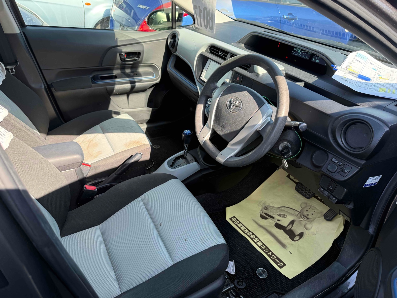 The 2014 Toyota Aqua Hybrid is a perfect choice if you're looking for a fuel-efficient and reliable car. Its hybrid engine helps save on gas, making it a smart pick for both city and highway driving. This stylish grey car comes with an automatic transmission and front-wheel drive, ensuring a smooth and easy ride. Plus, the mileage of 121,000 shows it has been well-maintained, offering great value for its next owner. Enjoy comfort with features like an air conditioner and power windows. Feel safe with its airbags, anti-lock braking system, and traction control. The Aqua also includes anti-theft protection, rear wiper, and UV-protected glass, making it a truly complete package.