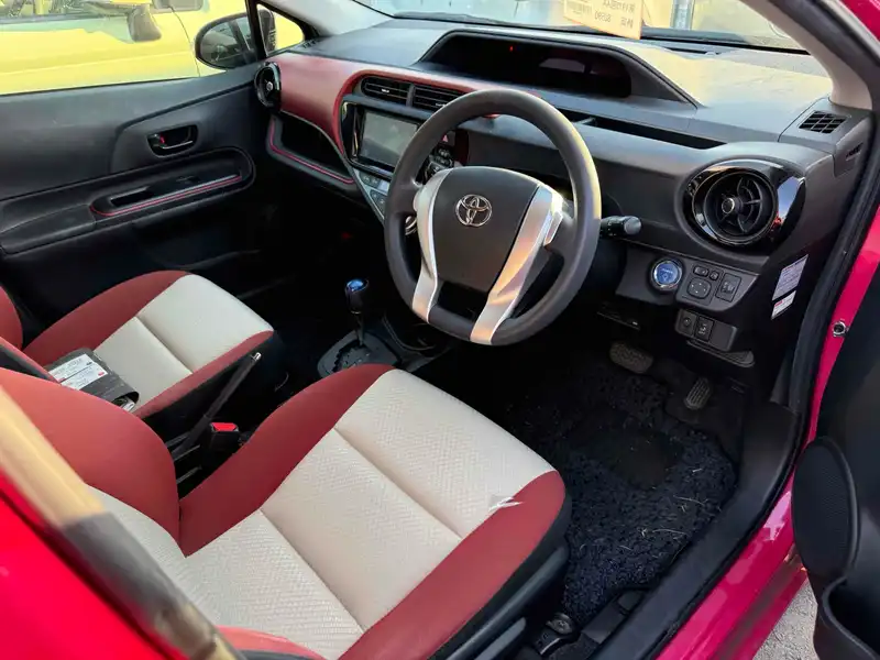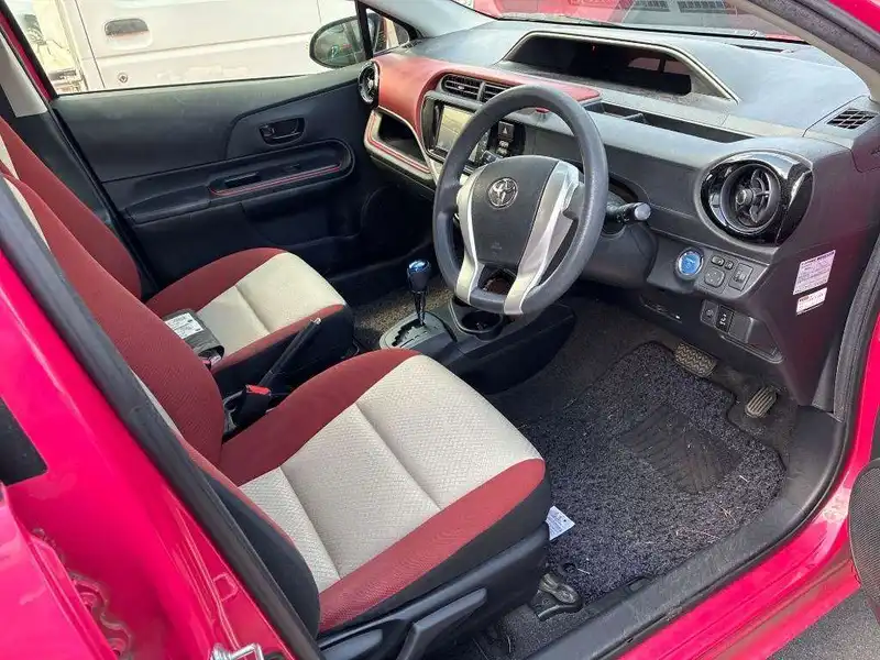 The 2015 Toyota Aqua Hybrid offers a perfect blend of efficiency and style. Its hybrid engine ensures you go further while spending less on fuel. The elegant pink color makes a statement on the road, turning heads wherever you drive. Inside, comfort meets convenience with features like an air conditioner and power windows. The foldable rear seat creates extra space when you need it. Enjoy peace of mind with advanced safety systems such as airbags, anti-lock brakes, and traction control. This vehicle is designed for those who value both functionality and fun. With its automatic transmission and front-wheel drive, driving is smooth and easy. Discover the joy of driving a reliable and eco-friendly car with the 2015 Toyota Aqua Hybrid.