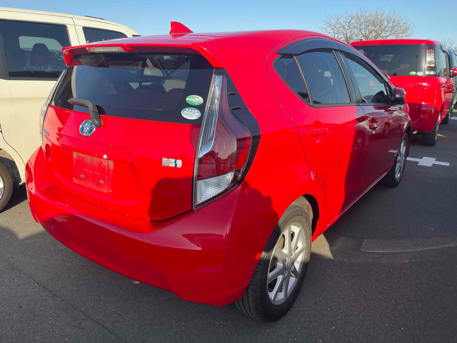 The 2015 Toyota AquaHybrid features a Red exterior and interior. This Hatchback is built for drivers seeking efficiency, comfort, and power. A reliable engine (Engine Code: 1NZ-FXE, Model Code: NHP10) with 74 of power and of torque can be found under the hood. FWD and a Automatic make the car easy and smooth. This vehicle boasts a fuel efficiency of just 2.7, providing a great mix of power and economic savings. There are lots of features inside the car that are meant to make driving better. You can use the key features including Air Conditioner, Power Windows, Foldable Rear Seat, Airbag, Airbag etc. This car's mileage has been checked to be 132,000 KM.