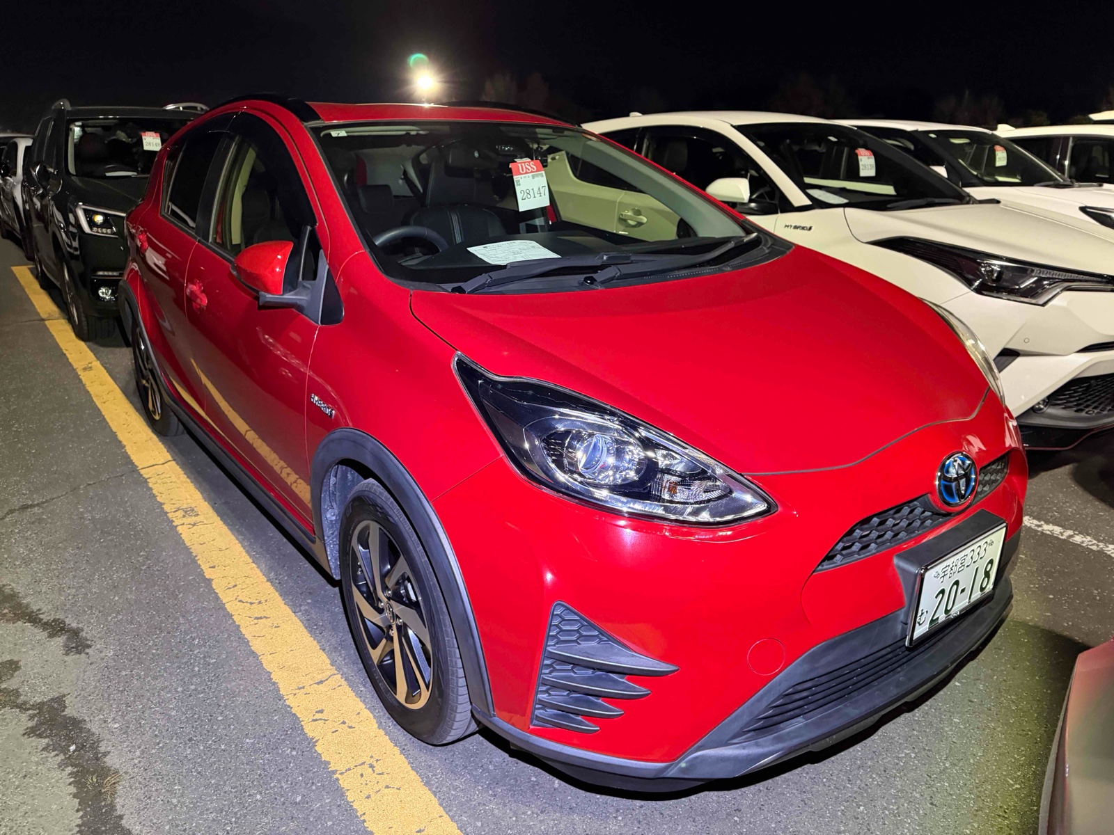 The 2017 TOYOTA aqua Hybrid is perfect for those who want to save on fuel costs without sacrificing style. This red beauty comes with an automatic transmission and is designed for smooth city driving with its front-wheel-drive system. This car is packed with features to enhance your comfort and safety. Enjoy the convenience of power windows and a foldable rear seat for extra storage. Drive with peace of mind thanks to multiple airbags, ABS, traction control, and more. Stay cool with the air conditioner while the anti-theft system keeps your car secure. The tinted UV glass protects you from the sun, making every ride comfortable and safe. With a mileage of 92,000, it's a reliable choice for anyone on the go.