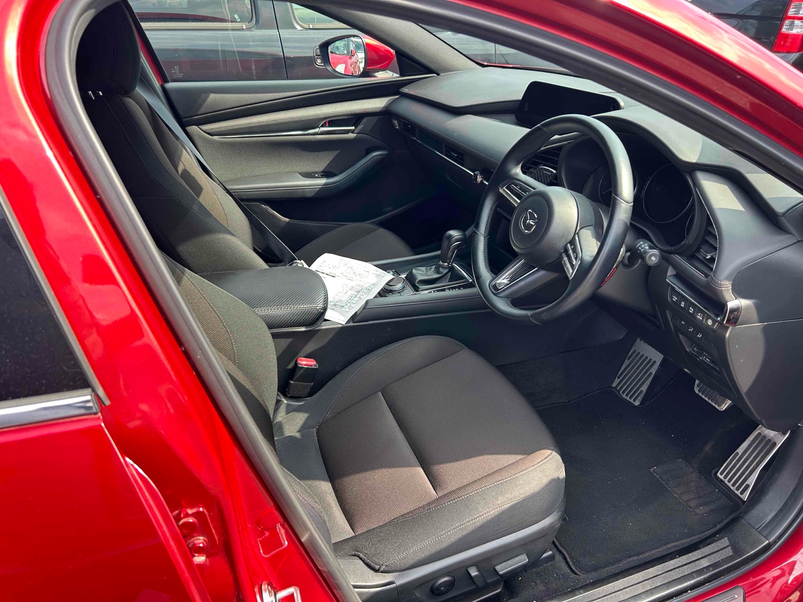Experience driving pleasure with the 2019 Mazda 3 Fastback. This stylish red car offers great comfort with its manual transmission and front-wheel drive, providing smooth handling in any situation. The leather steering and power windows add a touch of luxury, making every trip enjoyable. Stay safe on the road with features like multiple airbags, anti-lock braking system, and traction control. The car is also equipped with brake assist and an anti-theft system for extra reassurance. These features ensure you and your passengers are always well-protected. Enjoy convenience and comfort with an air conditioner and rear wiper. The UV and toned glass keep your ride cool and private. With 123,000 miles on it, this vehicle is perfect for long drives or city commutes. Make every drive an adventure with the 2019 Mazda 3 Fastback.