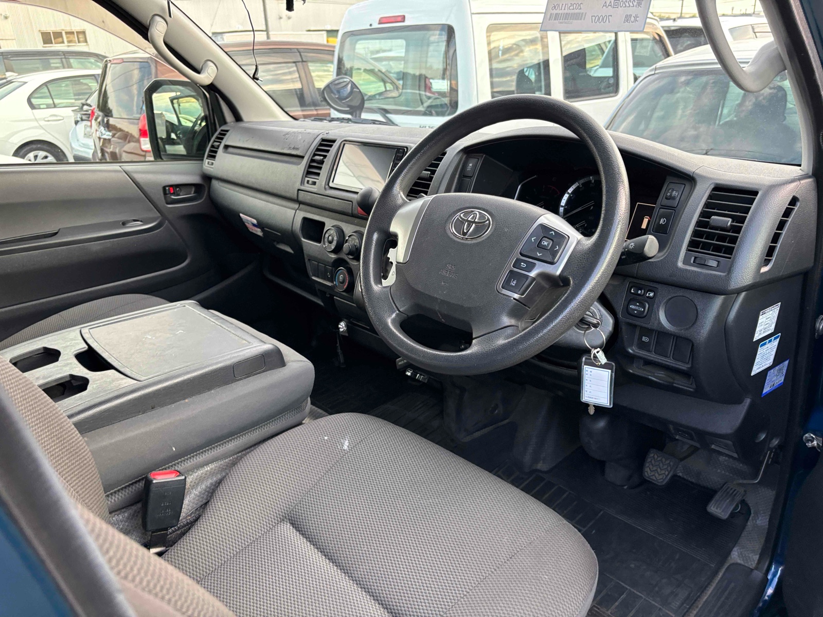 Discover the 2020 Toyota Hiace, a perfect blend of comfort and reliability. This dark blue van comes with an automatic transmission and a robust diesel engine, making it an excellent choice for family trips or business needs. With only 62,000 miles, it promises many more journeys ahead. Stay safe and enjoy the ride with features like airbags, anti-lock brakes, and traction control. The Hiace keeps you cool with an air conditioner and secure with power windows and anti-theft protection. Its UV glass offers added comfort on sunny days. Ideal for those looking for a spacious vehicle, the Toyota Hiace fits your lifestyle while ensuring efficiency. Embrace the reliability and practicality this van offers and enjoy every drive with peace of mind.